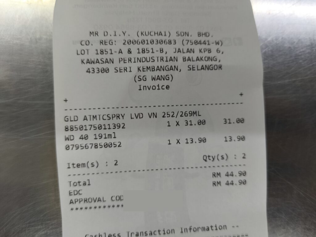 On my recent trip to MR.DIY Sungai Wang, I decided to test out my Cypher virtual card again. This time, I wasn’t buying fast food but picking up some essentials like WD-40 spray and a Glade air freshener.