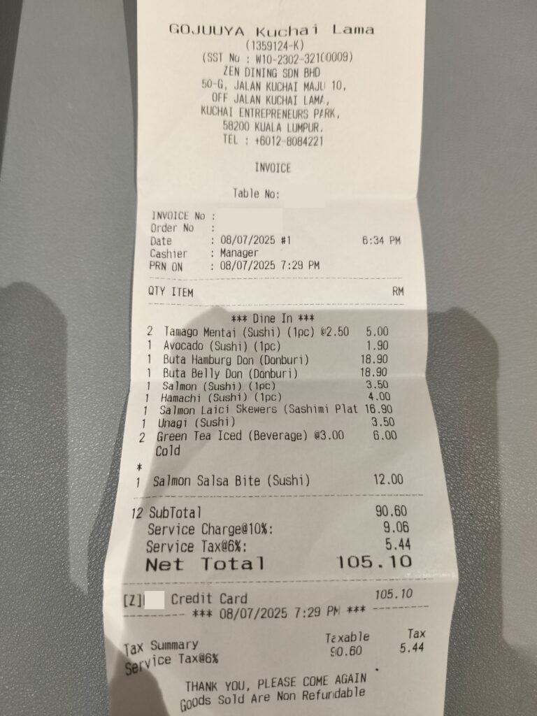 Last night, I had dinner with my cousin at Go Juu-Ya, a cozy Japanese restaurant in Kuchai Lama. The vibe was chill and the food hit the spot. If you’re looking for authentic Japanese food at decent prices, this place is worth checking out.
