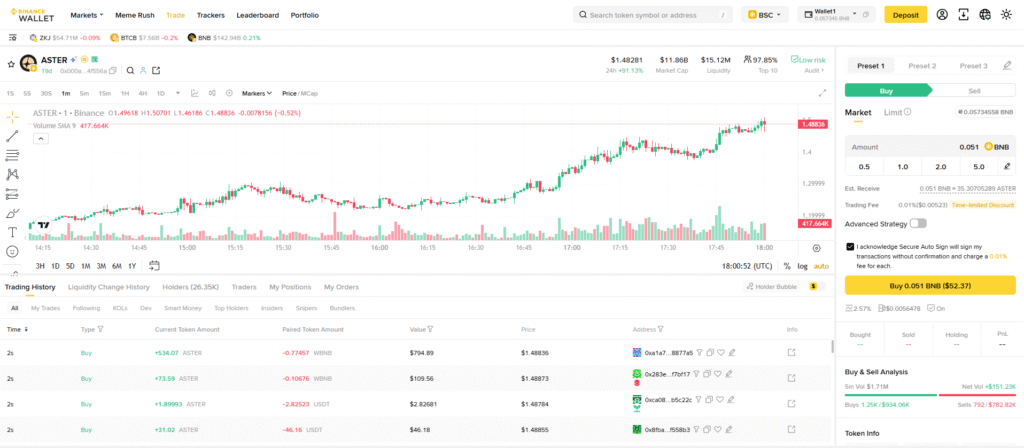 Use stablecoin pairs (BNB → USDT/USDC) to reduce volatility.